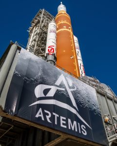 Fotografija nastala pred završetak petog dana leta vizuelno povezuje dva ključna elementa misije: poznato lice Meseca i istorijski iskorak čovečanstva u istraživanju svemira.